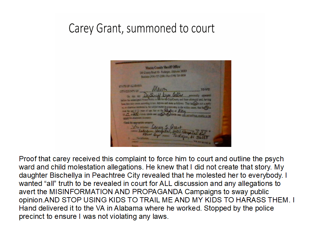 Excerpts from a court complaint: Stalking Harrison Grant, from age 13 by homosexuals originating in Georgia. They were going to make him gay and then a "murderer" and place him in prison for life. Lesbians contacted Olivia to harass her and have harassed me since 2010. Tavares my grandson framed with a transvestite, I later discovered and he wanted to quit middle school.